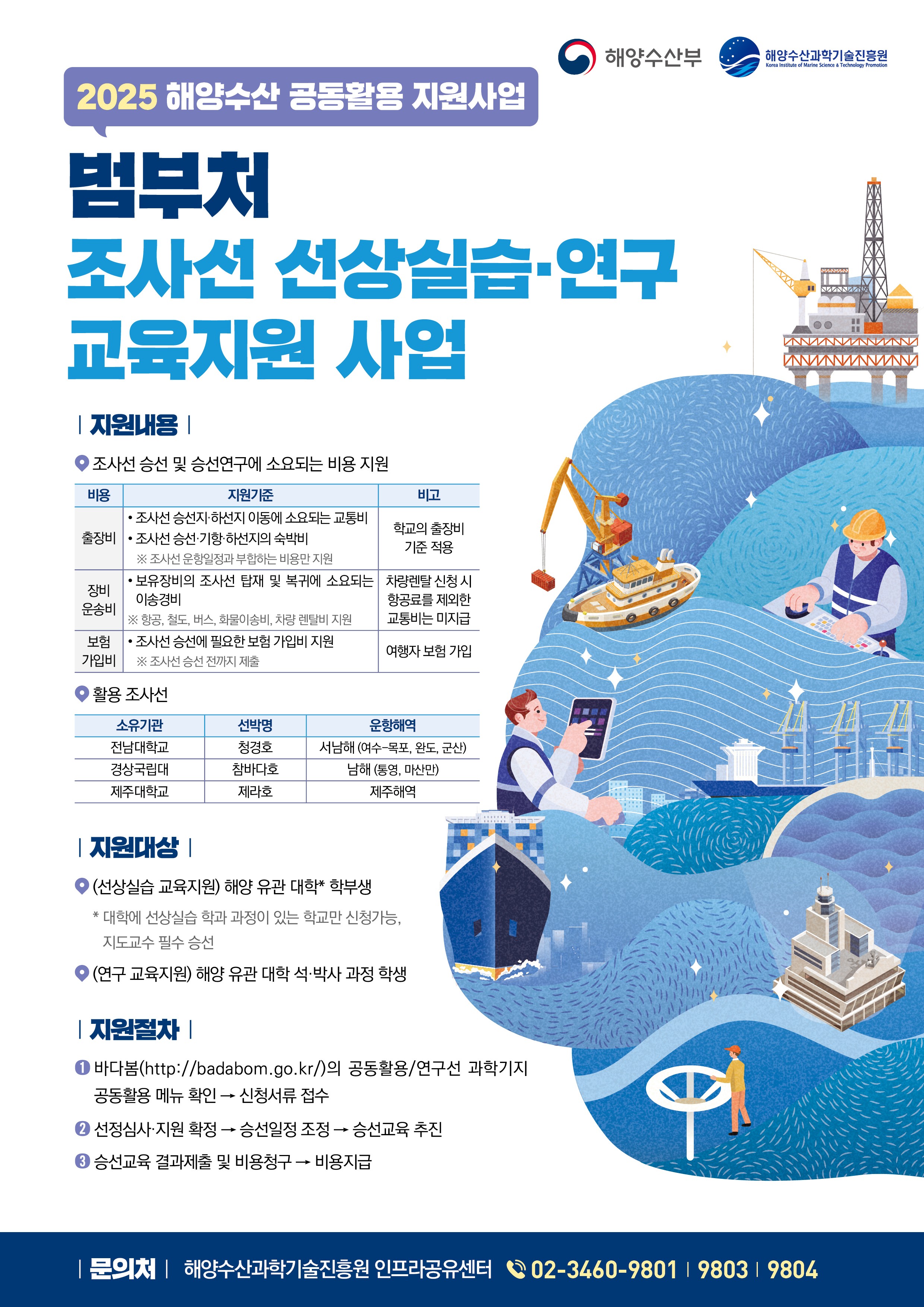 2025년 범부처 조사선 선상실습·연구교육지원사업 공고 안내 및 홍보