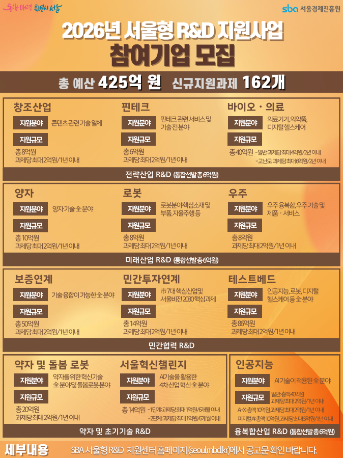 나. 접수방법 : SBA 서울R&D지원센터 홈페이지(http://seoul.rnbd.kr) 온라인 접수
