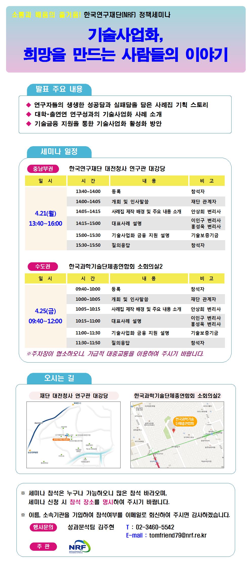 가. 발표주제 :「기술사업화, 희망을 만드는 사람들의 이야기」