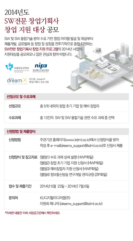 2014년도 SW전문 창업기획사 초기기업 및 예비창업자 모집 공고