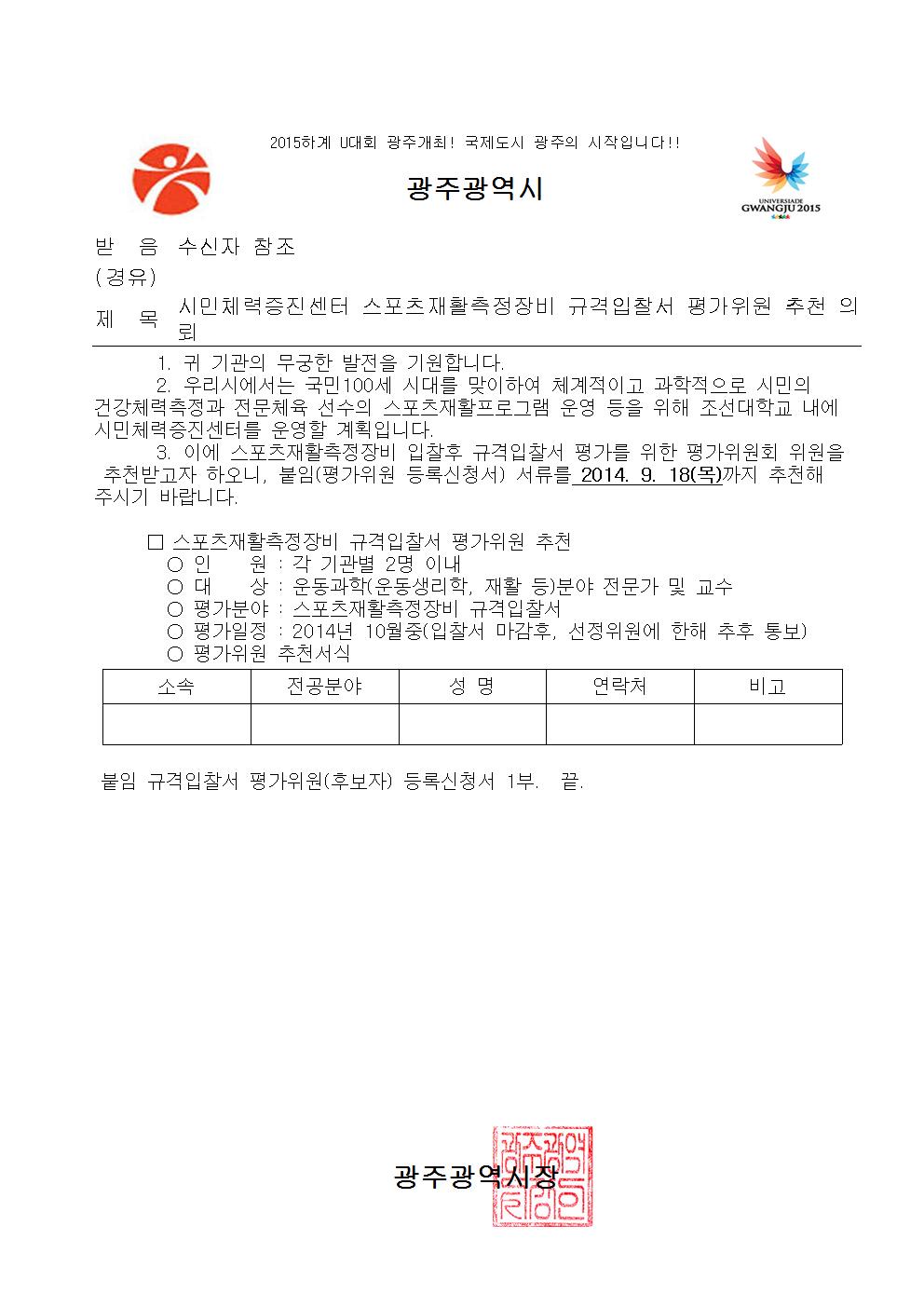 [광주광역시]시민체력증진센터 스포츠재활측정장비 규격입찰서 평가위원 추천