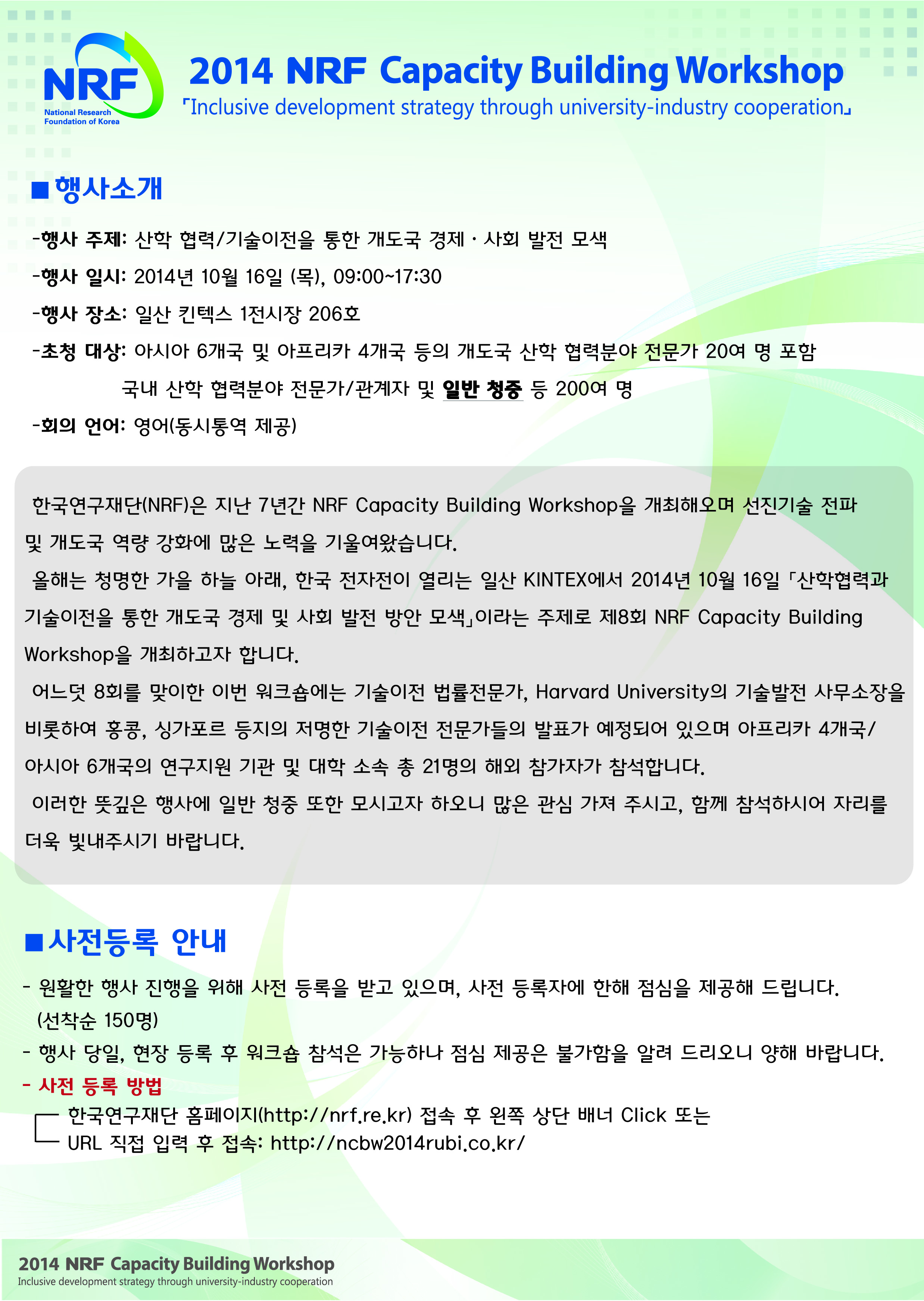 < 국제행사(NRF Capacity Building Workshop) 홍보 >