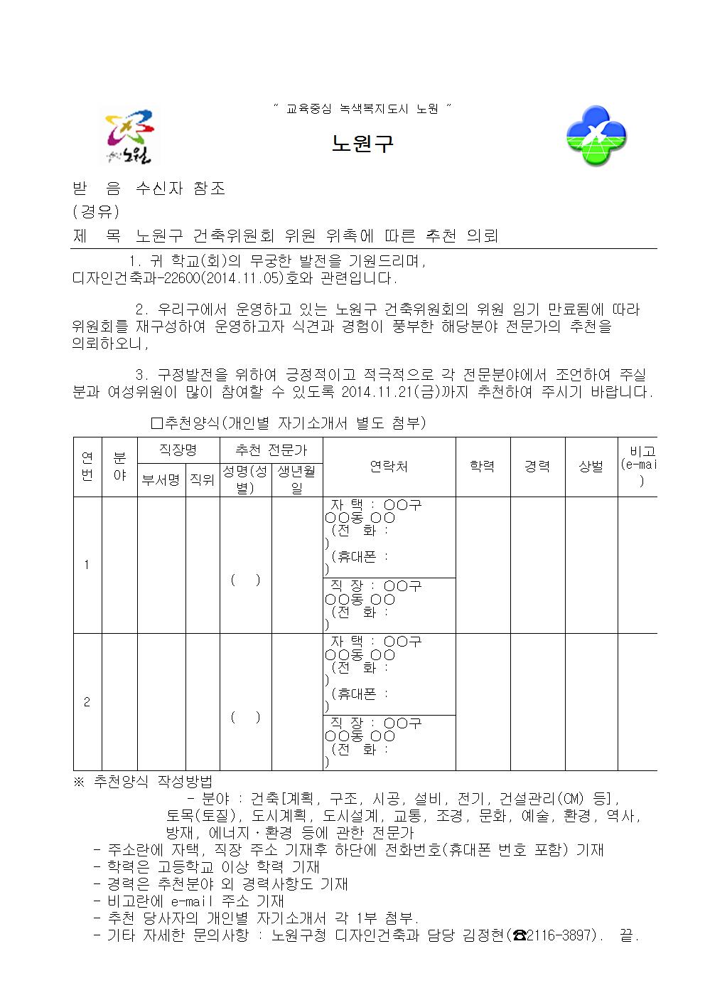 [노원구] 건축위원회 위원 위촉에 따른 추천