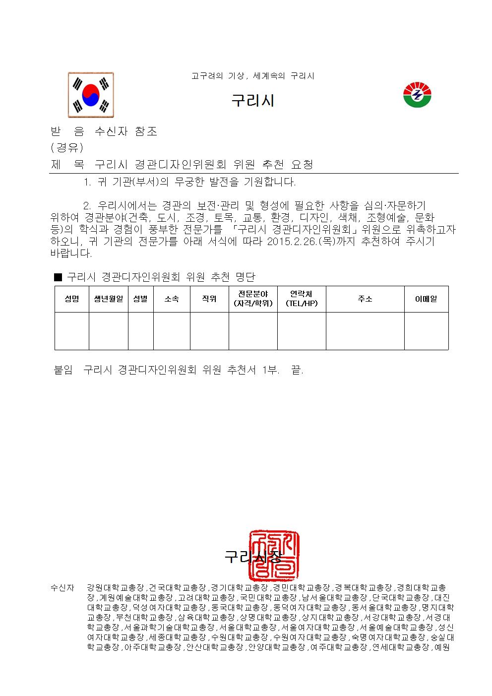 [구리시] 경관디자인위원회 위원 추천 요청