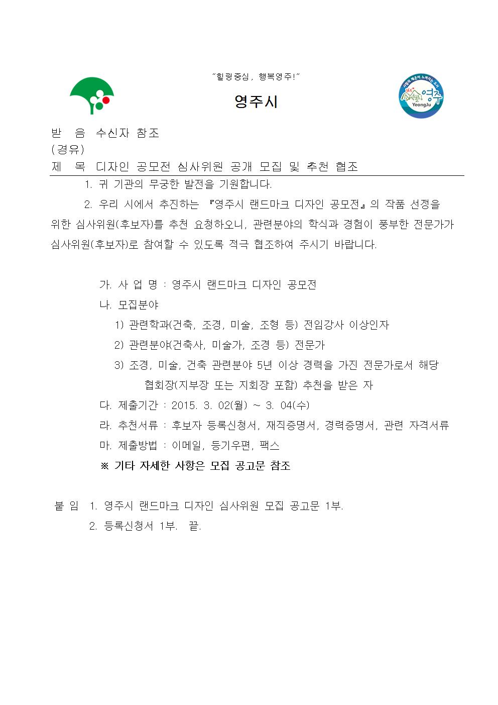 [영주시] 디자인 공모전 심사위원 공개 모집 및 추천 협조