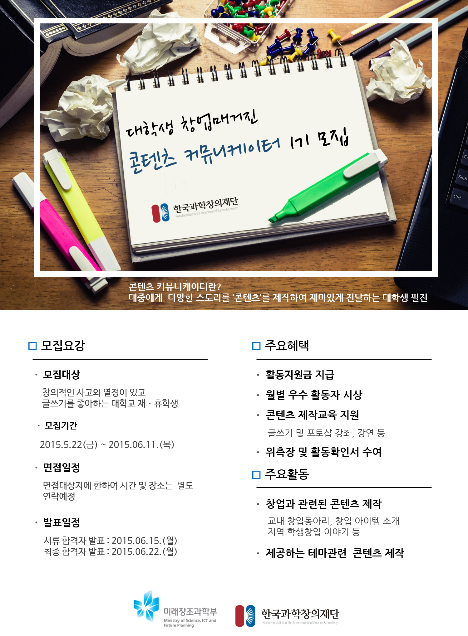 [한국과학창의재단] 대학생 창업매거진 콘텐츠 커뮤니케이터 1기 모집