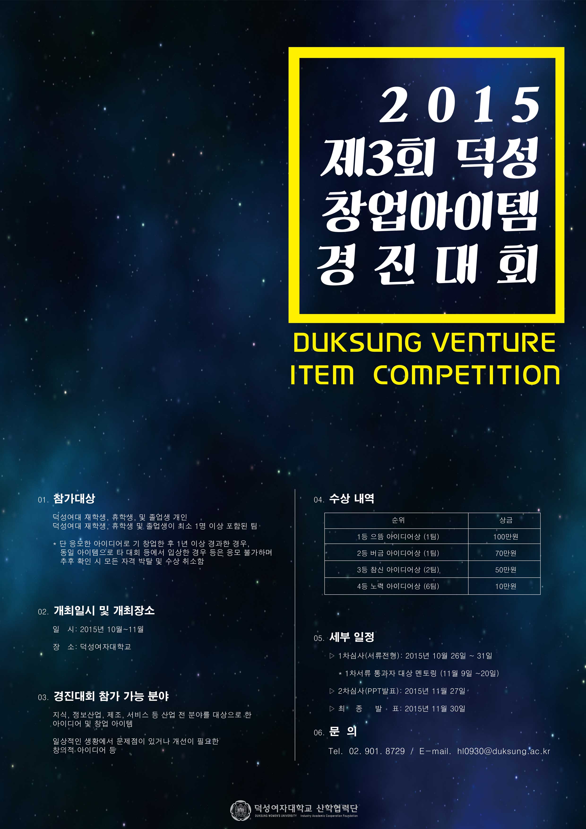 산학협력단 윤혜리(☎ 901-8729, 이메일: hl0930@duksung.ac.kr)