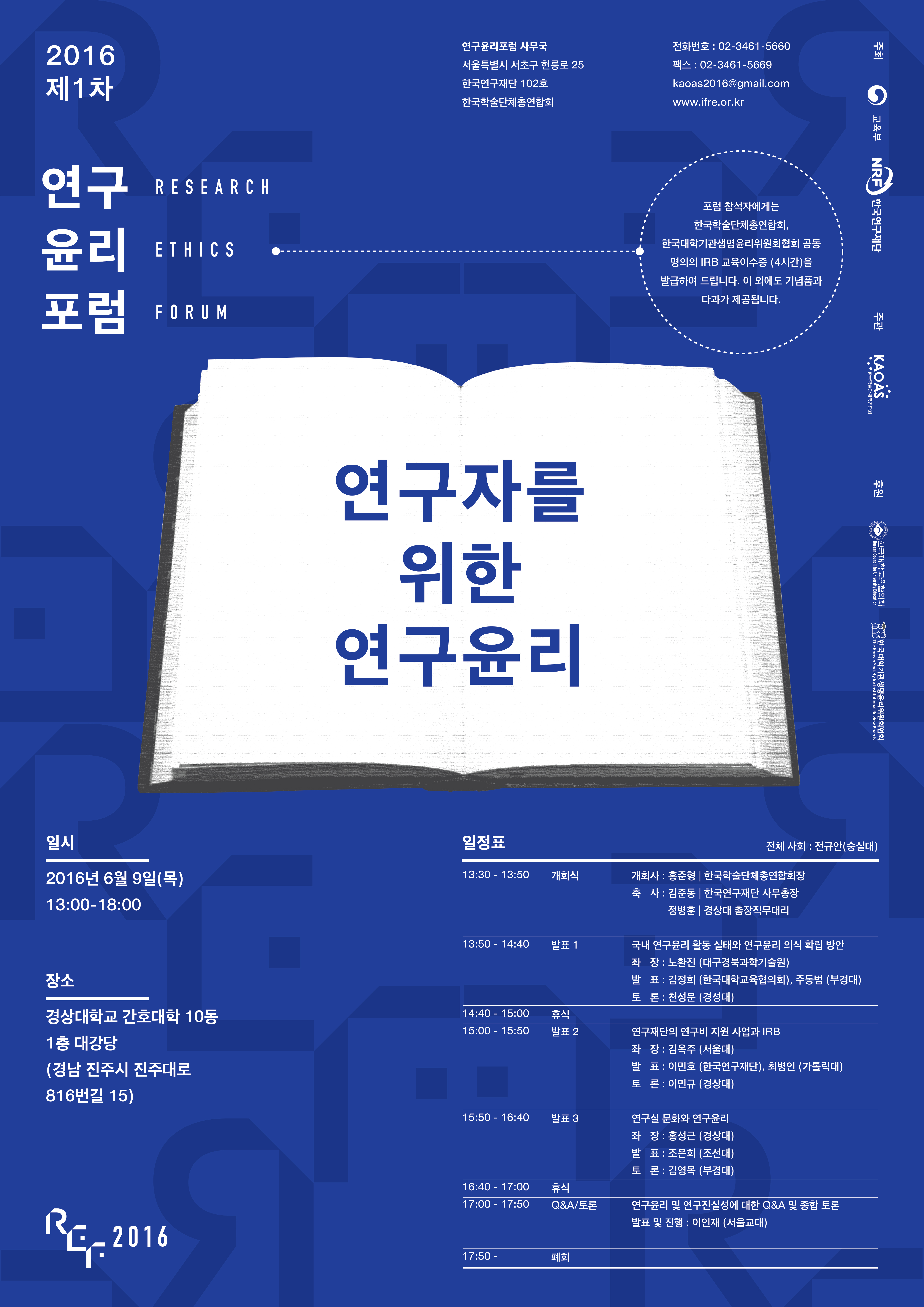 2. 2016년 제1차 연구윤리포럼 공식포스터 1부.