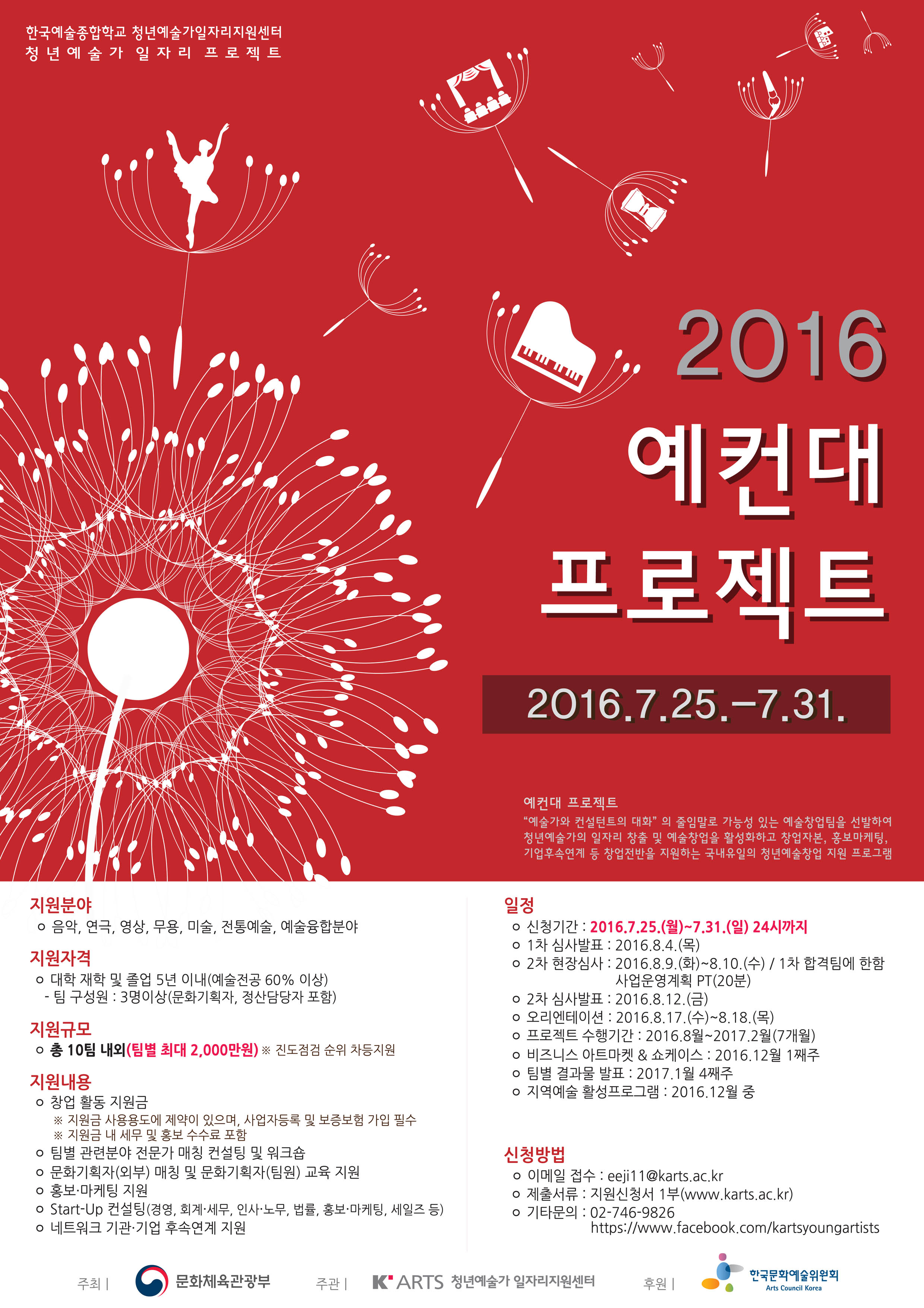 [한국예술종합학교] 2016 청년예술가 창업지원 '예컨대 프로젝트' 공모