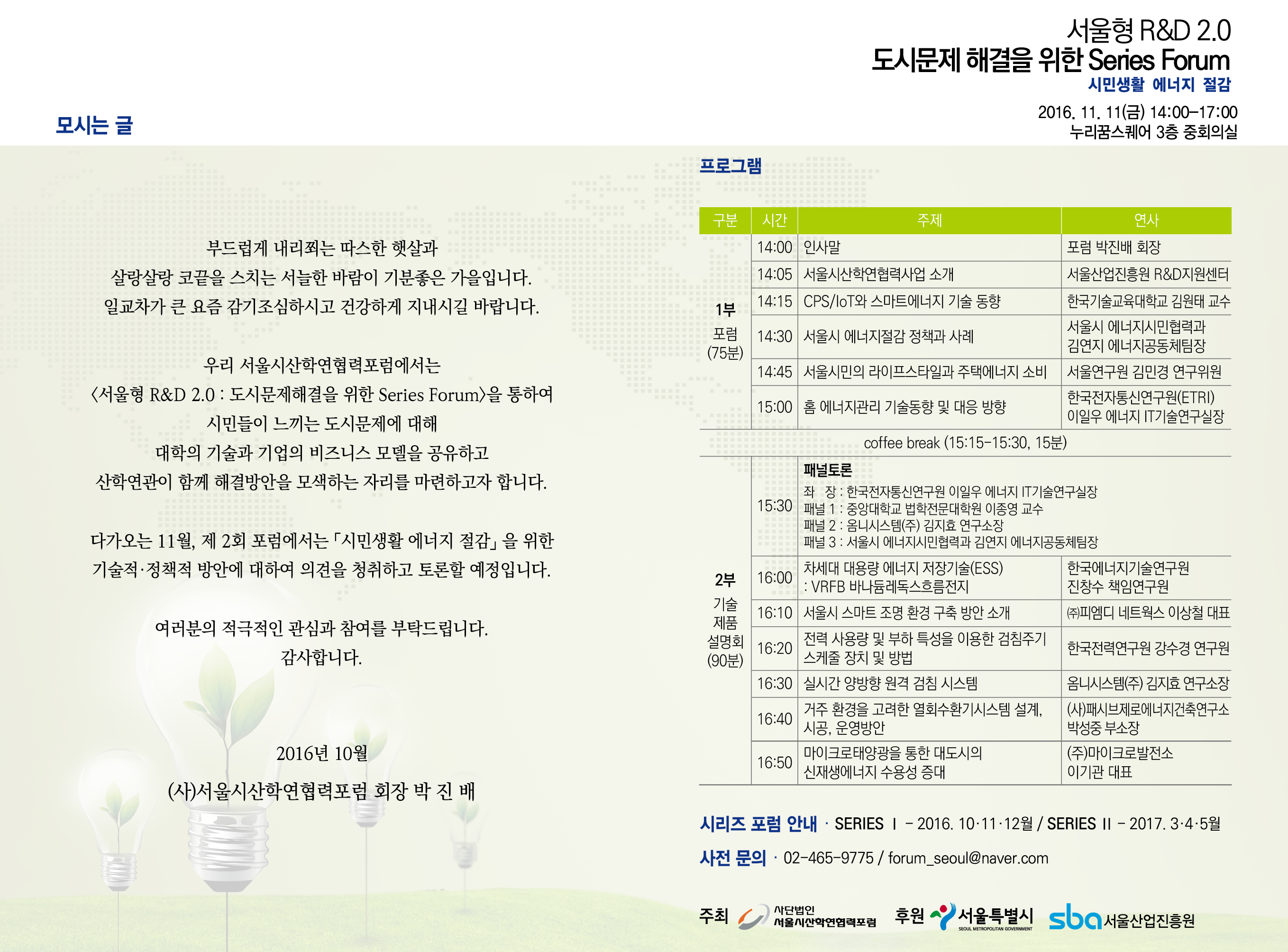 [서울시산학연협력포럼] 도시문제 해결을 위한 시리즈포럼 <시민생활 에너지 절감>
