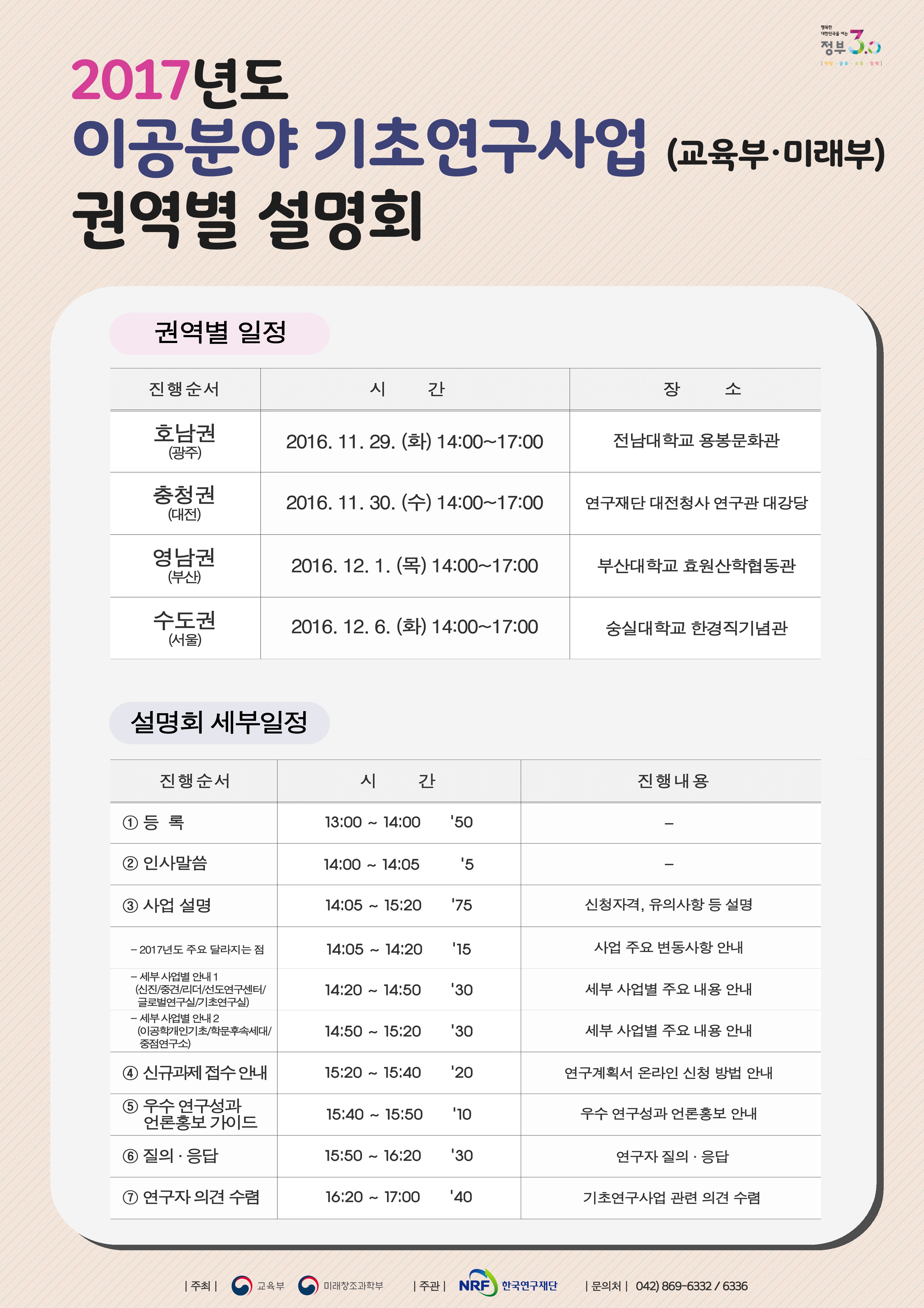 [한국연구재단] 2017년도 이공분야 기초연구사업(교육부·미래부) 권역별 설명회 개최