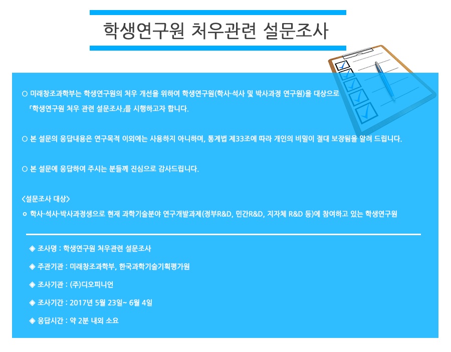 [미래창조과학부] 학생연구원 처우관련 설문조사 협조 요청