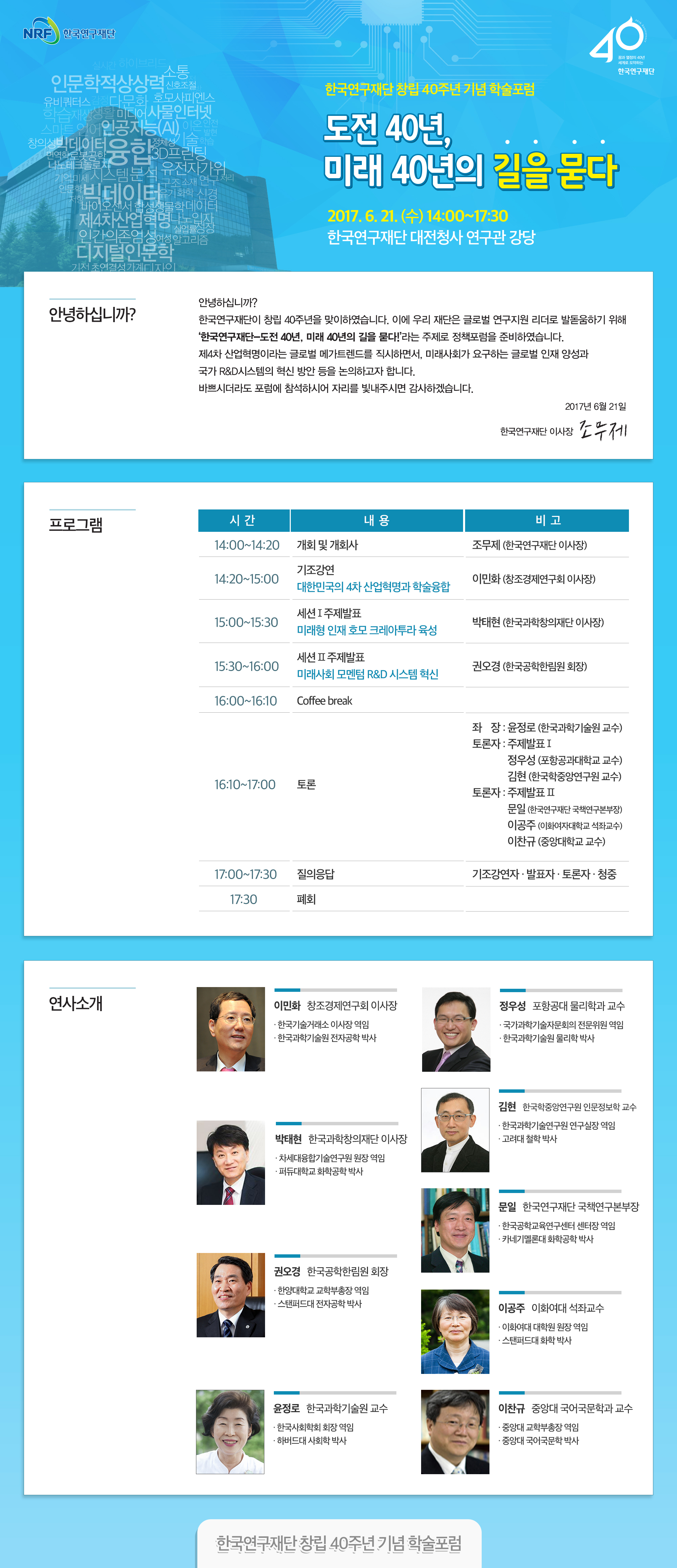 붙임 : 한국연구재단 창립 40주년 기념 학술포럼 초청장 1부. 끝.