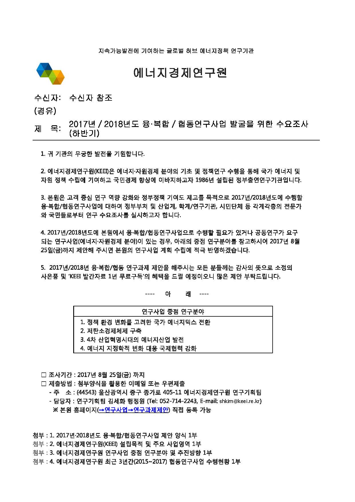 [에너지경제연구원] 2017년/2018년도 융복합/ 협동연구사업 발굴을 위한 수요조사(하반기)