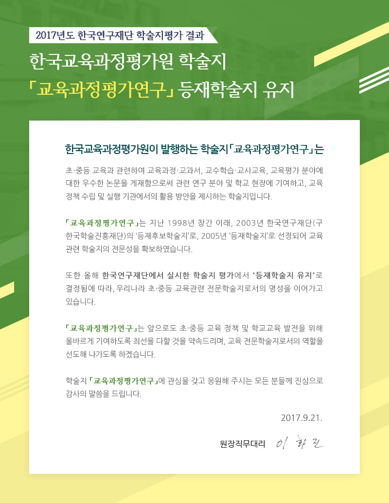 [한국교육과정평가원] 2017년도 학술지 평가 결과「교육과정평가연구」등재학술지 유지