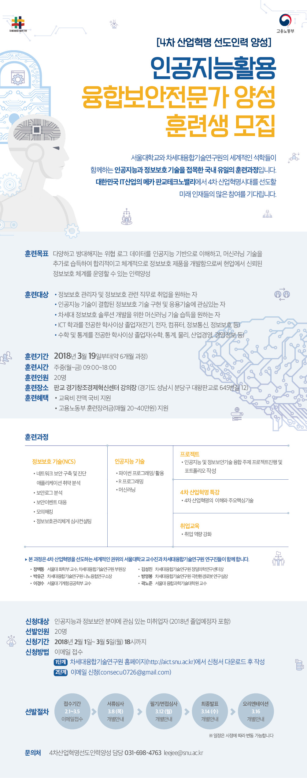 사. 문의사항 : 4차산업혁명선도인력양성 담당자 031-698-4763, leejee@snu.ac.kr