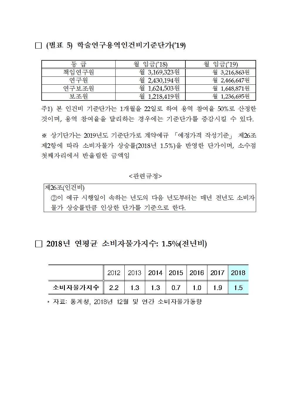 [기획재정부 계약예규] 2019년 학술연구용역 인건비 기준단가 안내