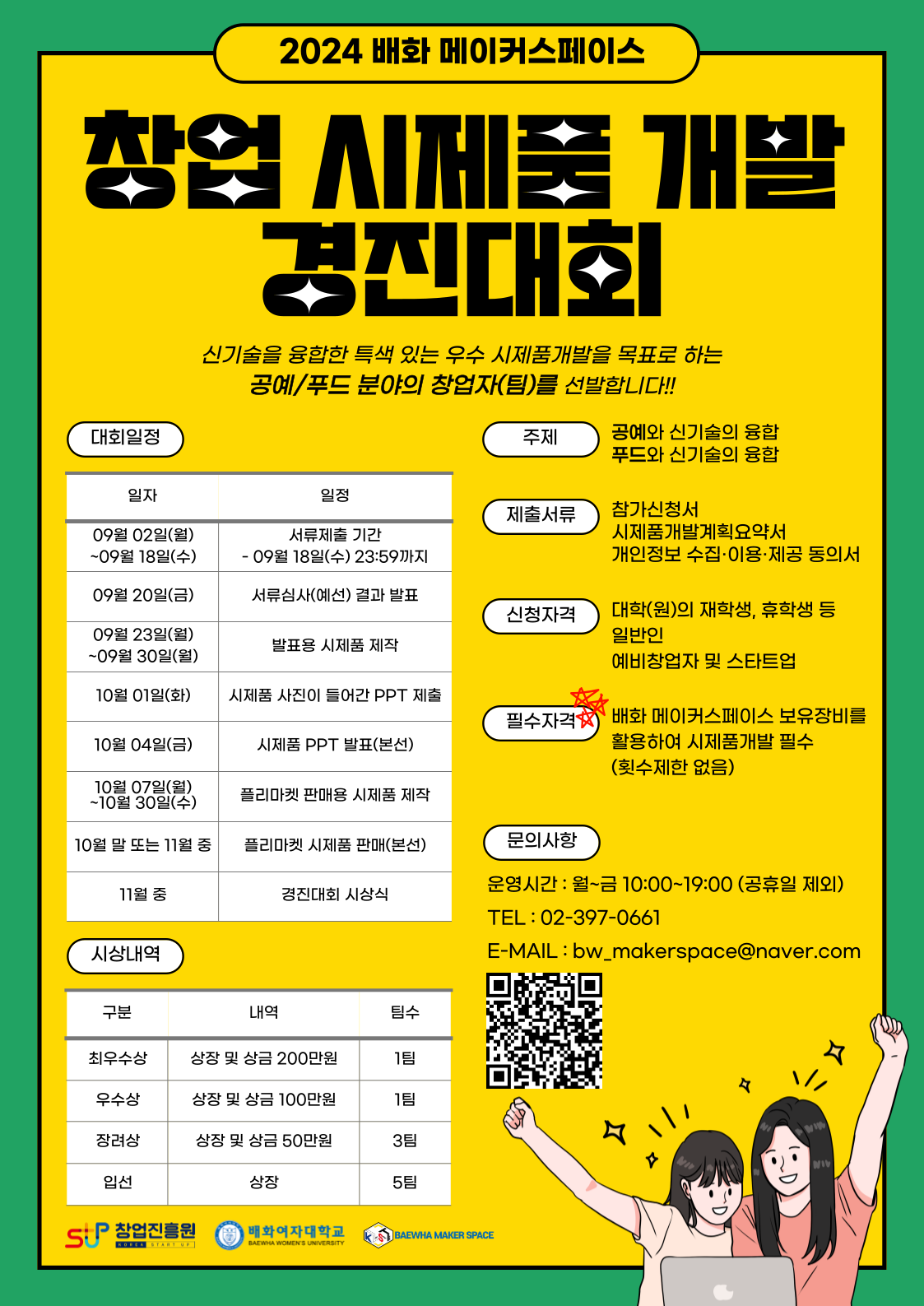 [배화여자대학교 산학협력단] 2024 창업 시제품개발 경진대회 홍보 협조 요청