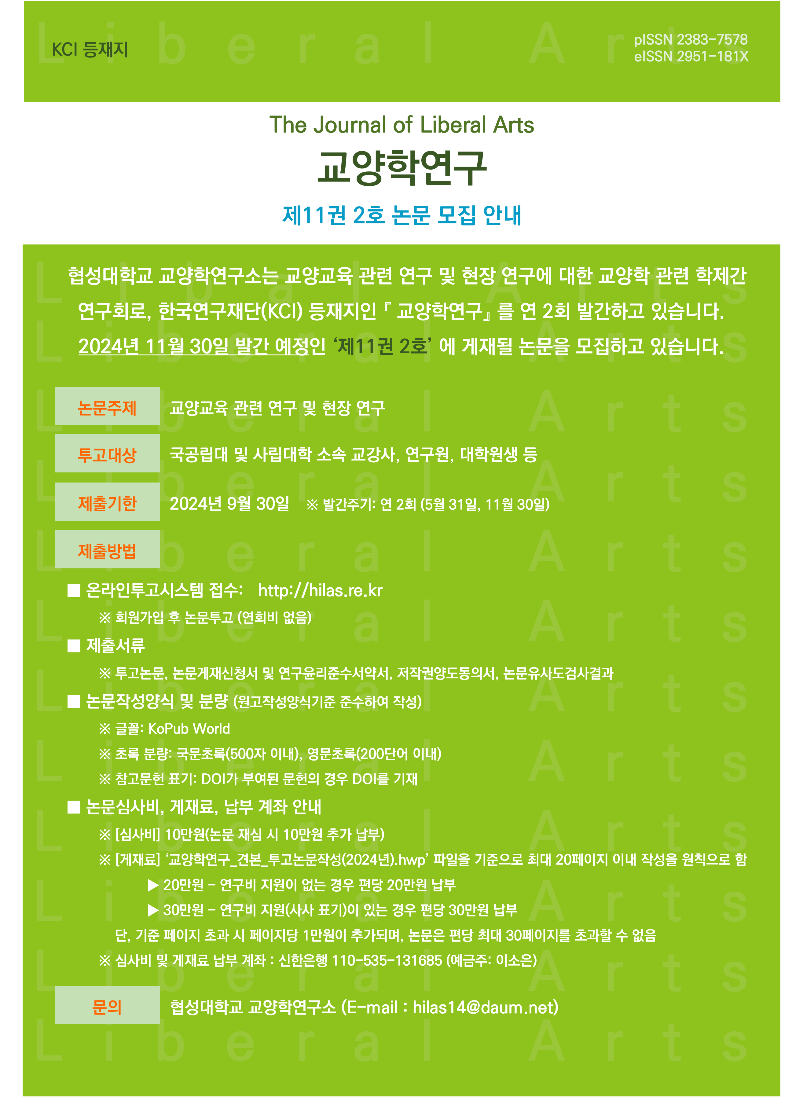 붙임 1. (협성대학교 교양학연구) 2024년 제11권 2호 논문 모집 안내.png