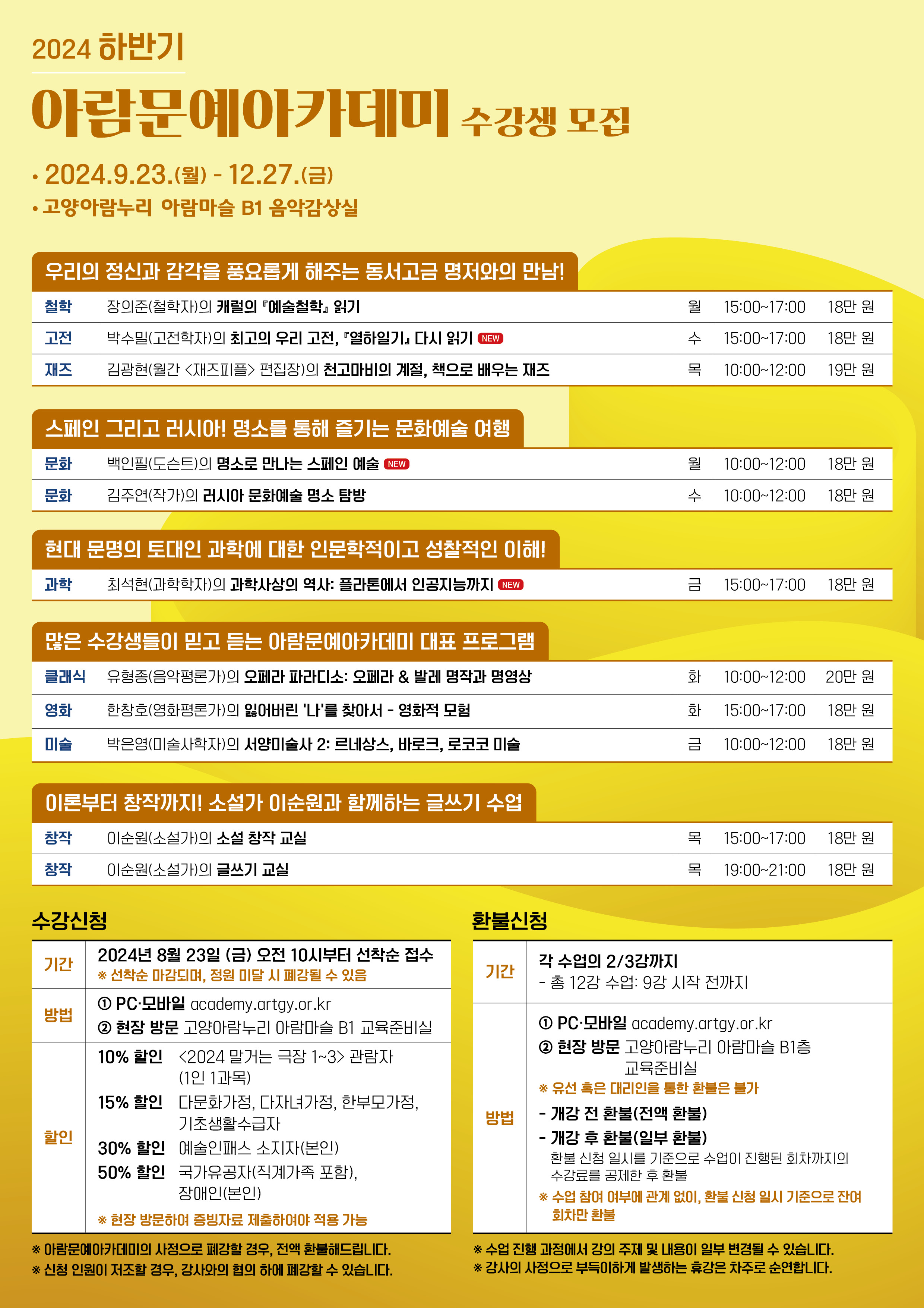 고양문화재단 [2024 하반기 아람문예아카데미] 프로그램 안내