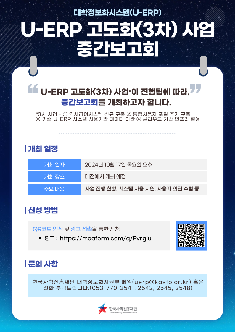 대학정보화시스템(U-ERP) 고도화(3차) 사업 중간보고회 참가 수요조사 및 신청 안내