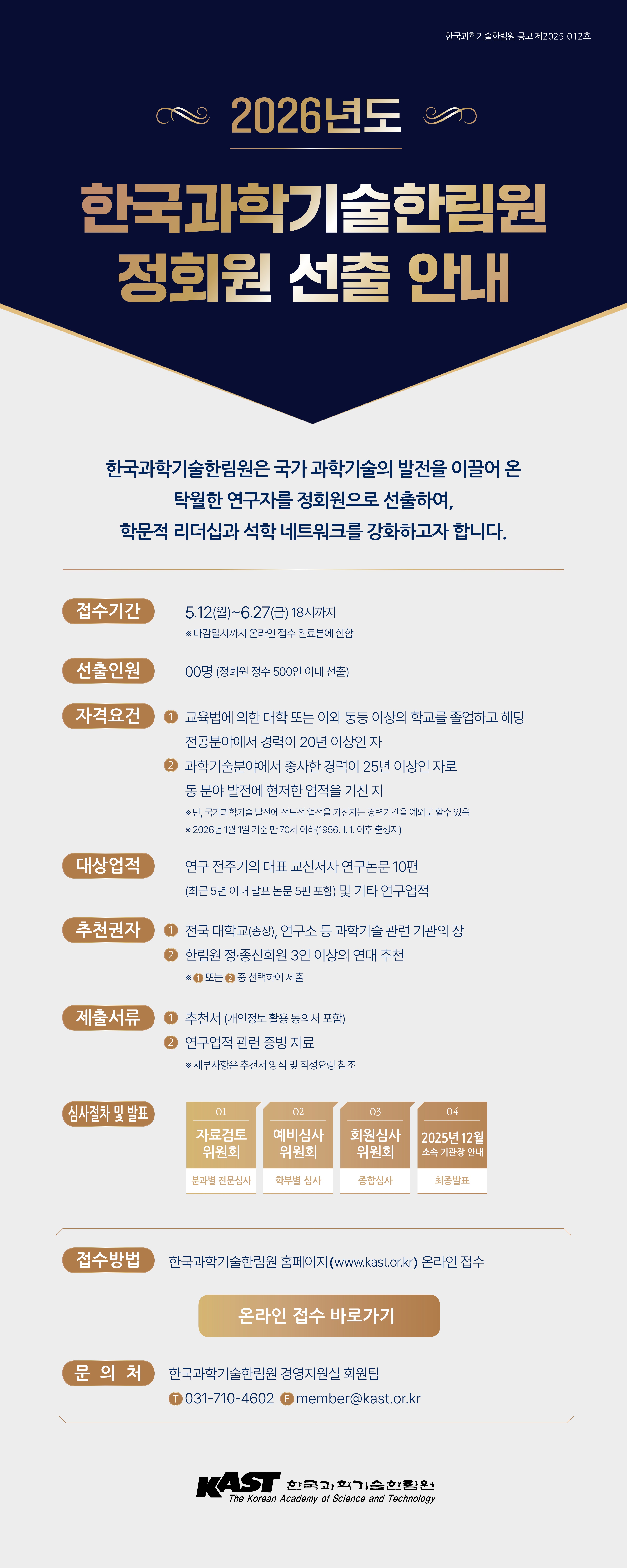 붙 임 1. 2026년도 한국과학기술한림원 정회원 선출 안내 1부.