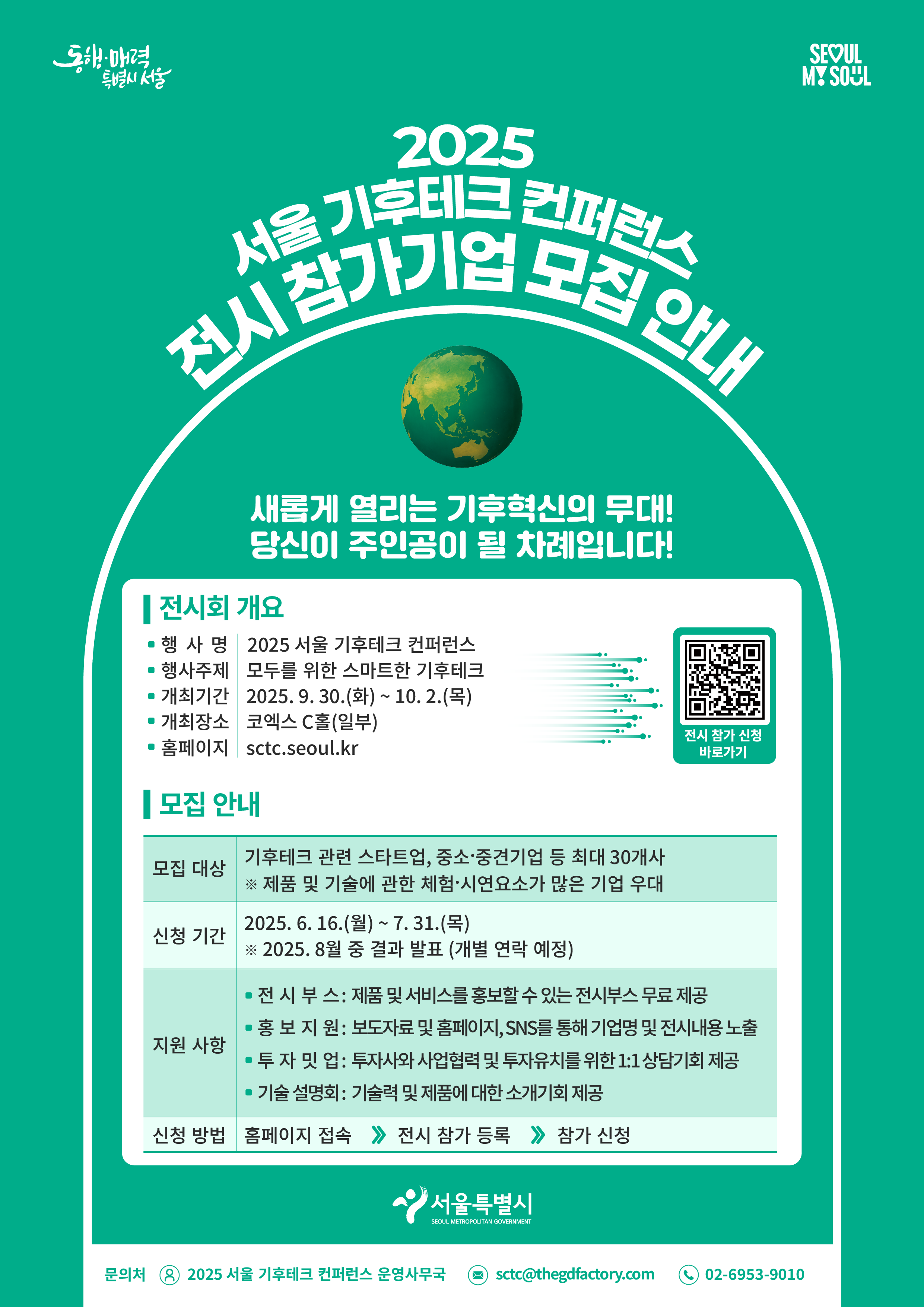 「2025 서울 기후테크 컨퍼런스」 전시 참여 기업 모집