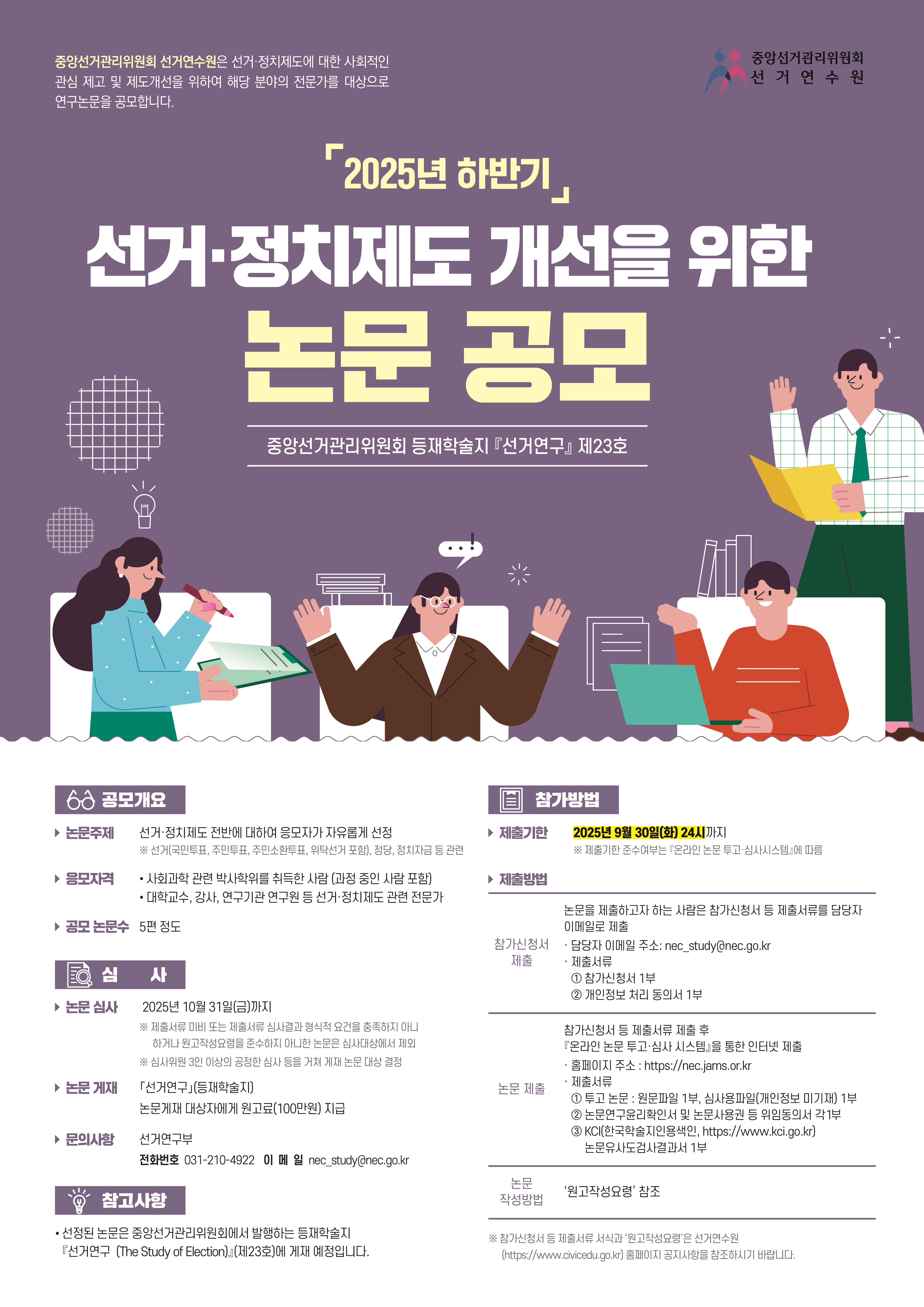 2025년도 하반기 선거·정치제도 개선을 위한 등재학술지 『선거연구』 논문 공모
