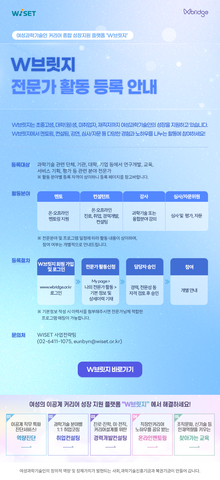 붙임 W브릿지 전문가 활동 등록 홍보 웹자보 1부. 끝.