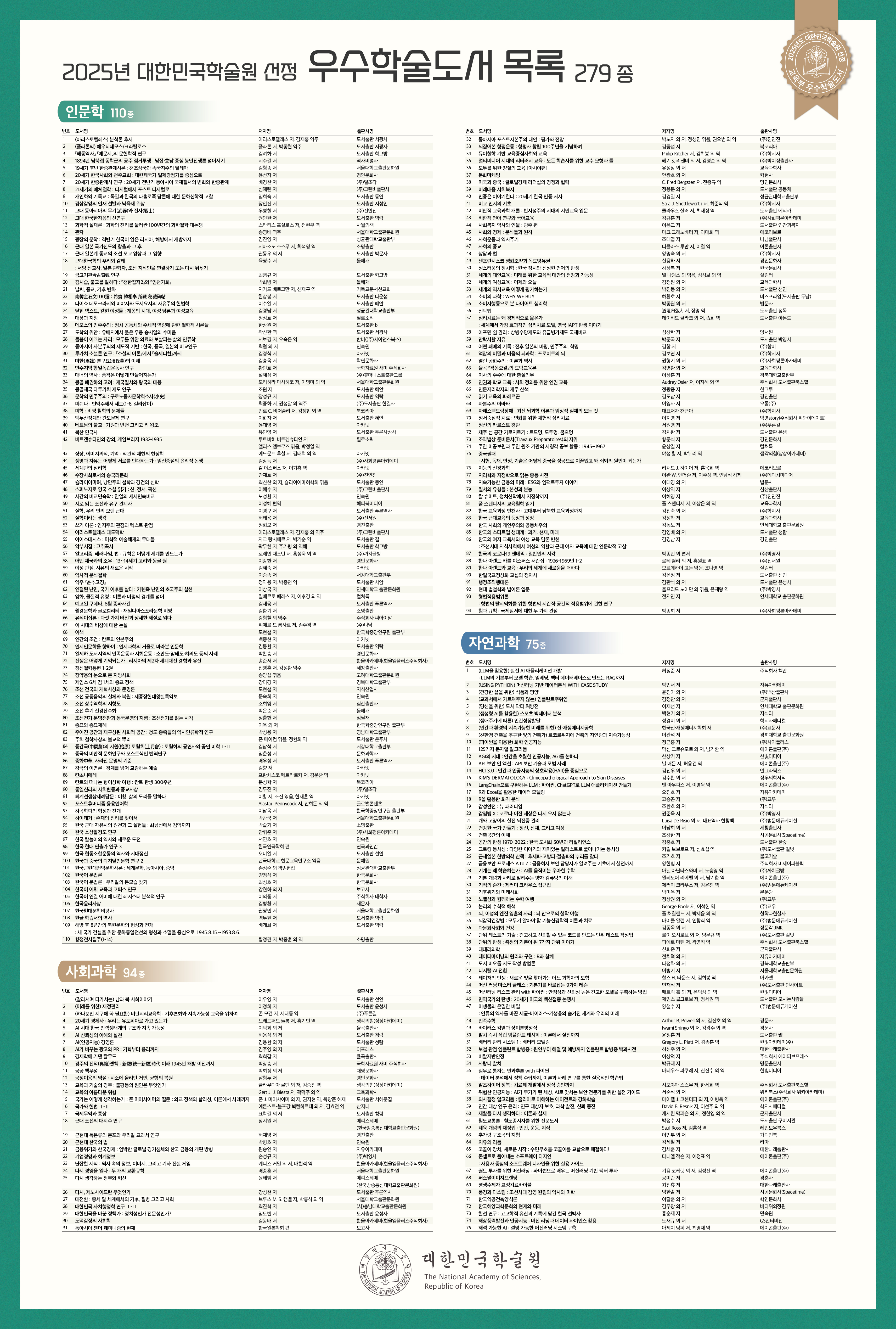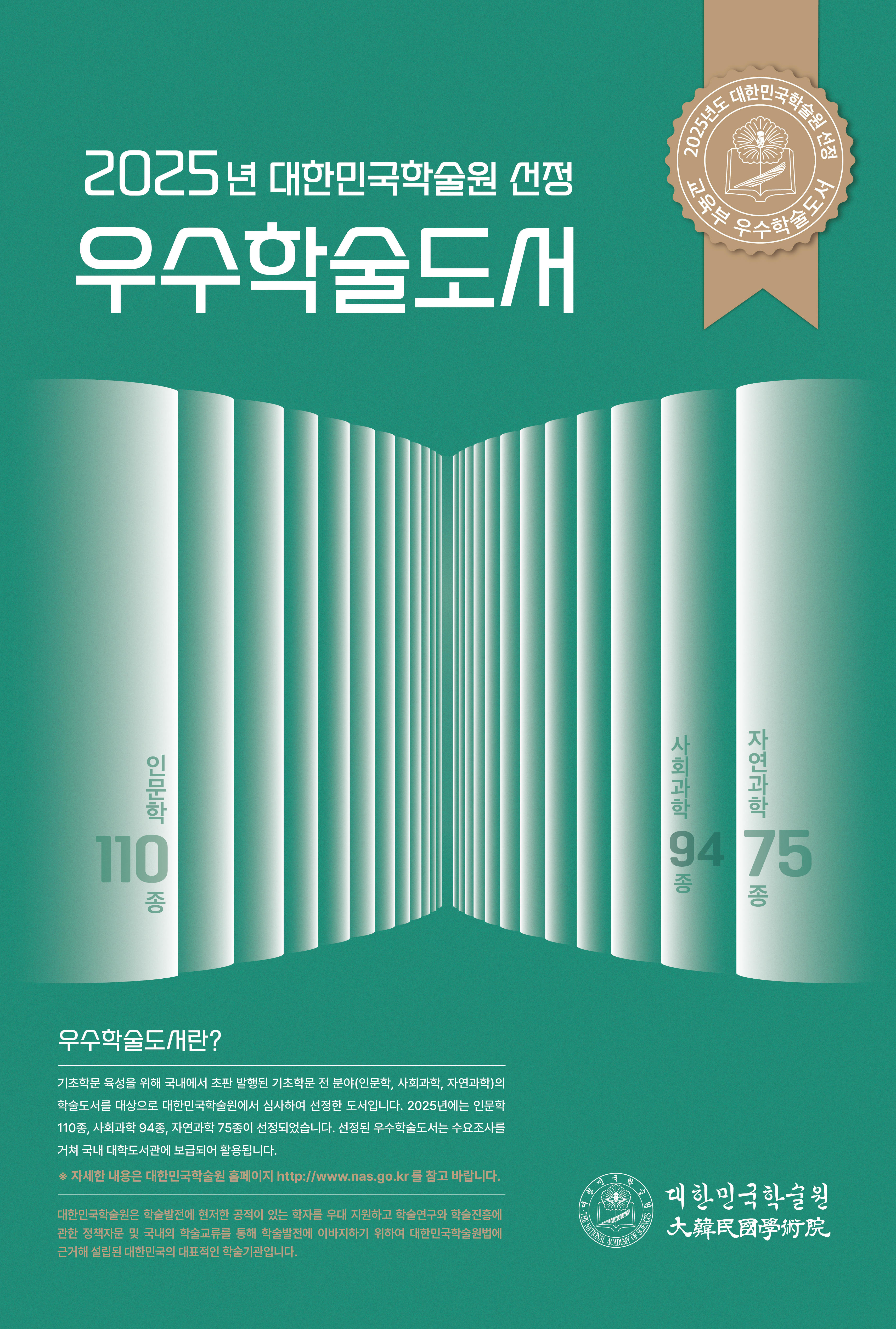붙임 우수학술도서 사업홍보 및 2025년 선정도서 목록 포스터 각 1부. 끝.