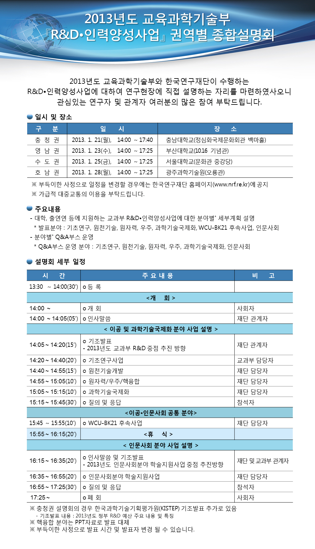 [한국연구재단] 2013년도 교육과학기술부 R&D 인력양성사업 권역별 종합설명회 개최